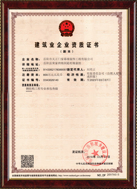 歡迎訪問岳陽市天正門窗幕墻裝飾工程有限公司!